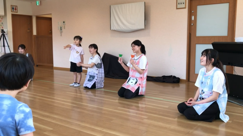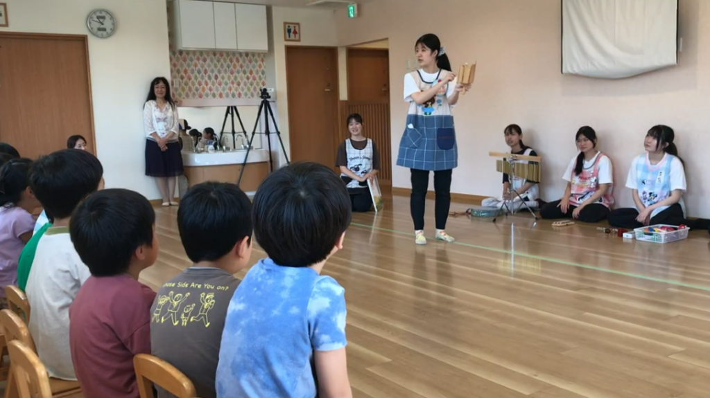 7月中旬に卒業生も保育士としてお世話になっている近隣のリサ保育園で、ゼミの2年生が音楽表現あそびの活動をさせていただきました。